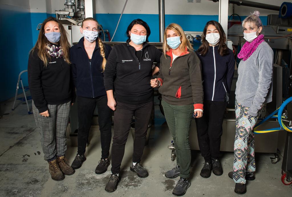 Eccola la squadra che sta lavorando nel frantoio di San Casciano Val di Pesa, a un tiro di schioppo da Firenze. Sette donne, età media 31 anni, alle prese chi con la cassa integrazione, chi col lavoro a casa, chi con la famiglia, che hanno deciso di passare dalle parole ai fatti. In un mondo in cui il ‘rosa’ è garantito per legge nella cabina elettorale, queste ragazze hanno aspettato deciso di impegnarsi sul serio e non solo per fare notizia, in un’impresa nuova.