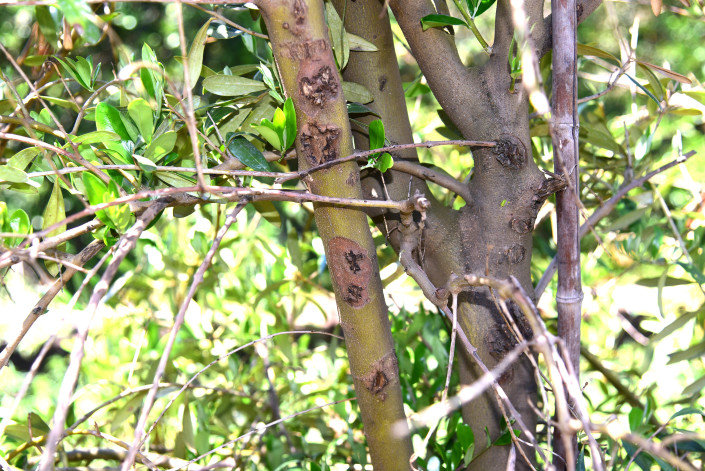 Defogliazioni massicce, danni ai rami e ai germogli. Gli oliveti californiani sono colpiti da un nuovo agente patogeno, probabilmente un fungo. Danni maggiori a Coratina e Picholine ma problemi anche per Arbosana e Arbequina