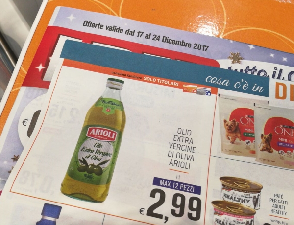 A inaugurare le offerte nel mezzo della campagna olearia sono stati Cirio (l'unico che ha dichiarato il sottocosto) e Farchioni, a breve distanza è arrivato il Primadonna di Lidl. Prezzo abbastanza simile, 3,98 euro al litro per Costanza alla Coop. E' subito quindi stato un fiorire di promozioni a 3,99 euro/litro in tutte le insegne della GDO.