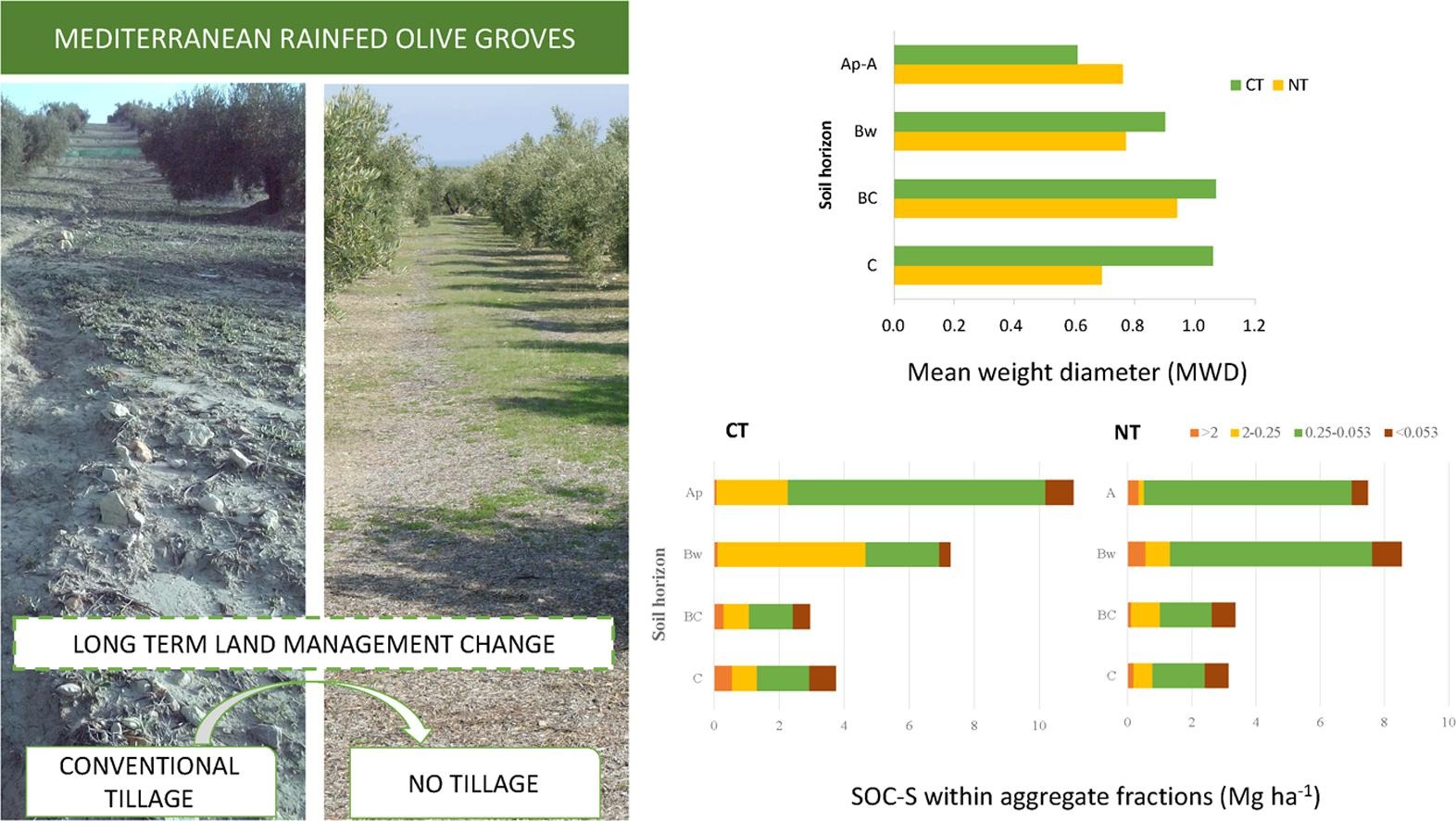 L'adozione della non lavorazione, lasciando il terreno nudo non ha aumentato il pool di carbonio organico nelle frazioni aggregate e quindi non è sempre la migliore opzione di gestione per aumentarne il contenuto nelle aree mediterranee.