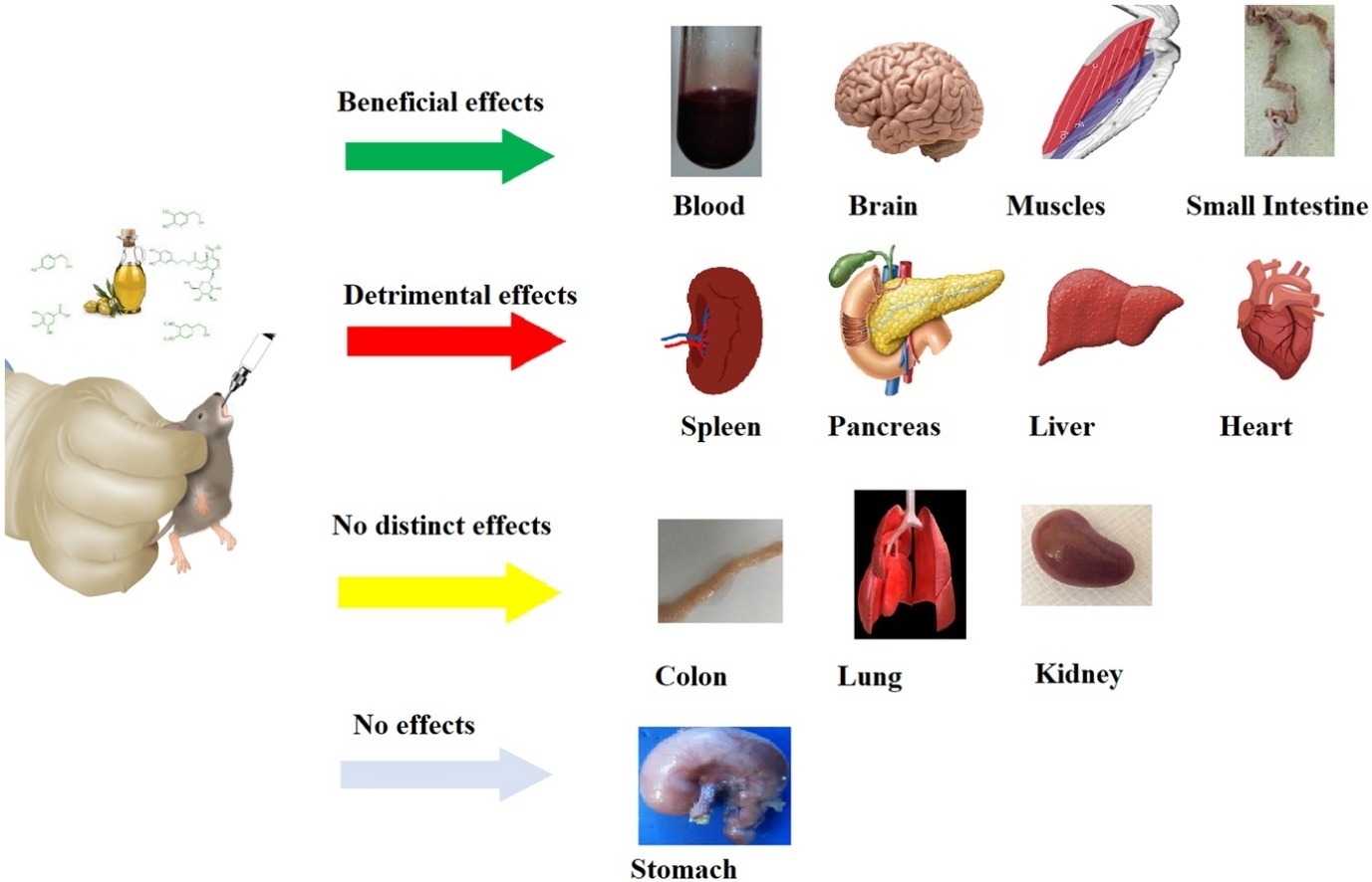 I nostri risultati hanno mostrato che l'extra vergine ha rafforzato il profilo antiossidante del sangue, del cervello, del muscolo e dell'intestino tenue, ha indotto lo stress ossidativo nella milza, nel pancreas, nel fegato e nel cuore, mentre nessun effetto distinto è stato osservato nel polmone, nel colon e nel rene.